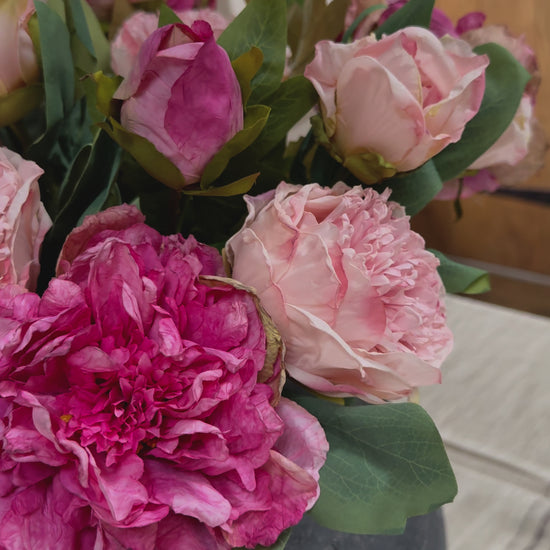 Pink Peony Faux Flower Arrangement – Dried Look Artificial Bouquet - Ariella